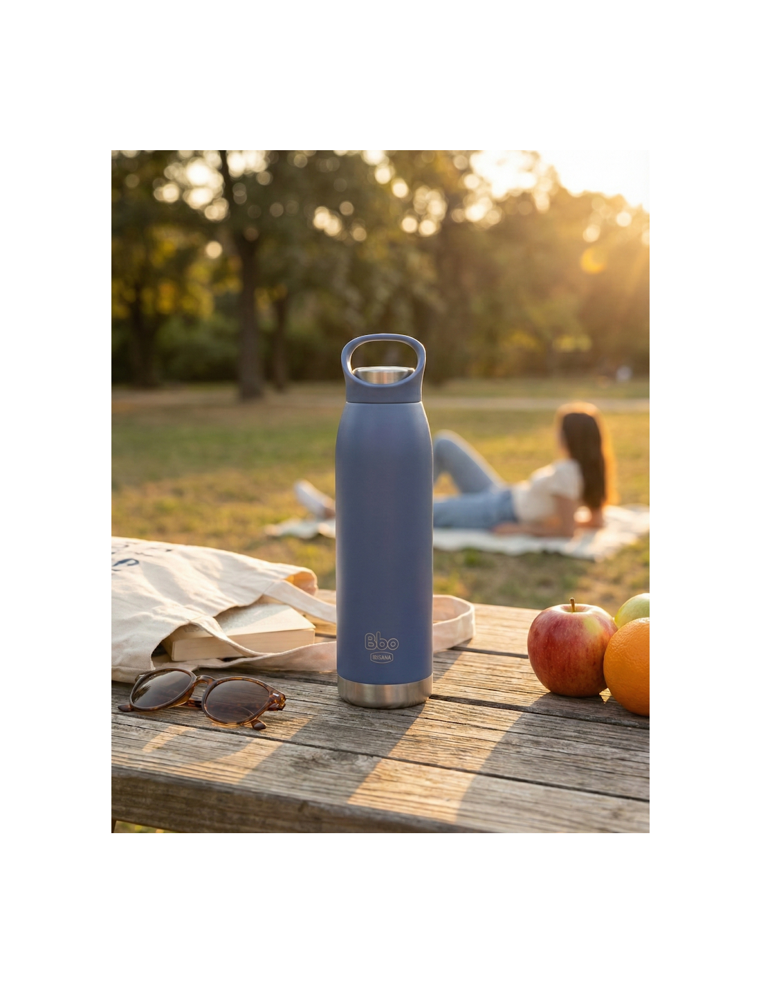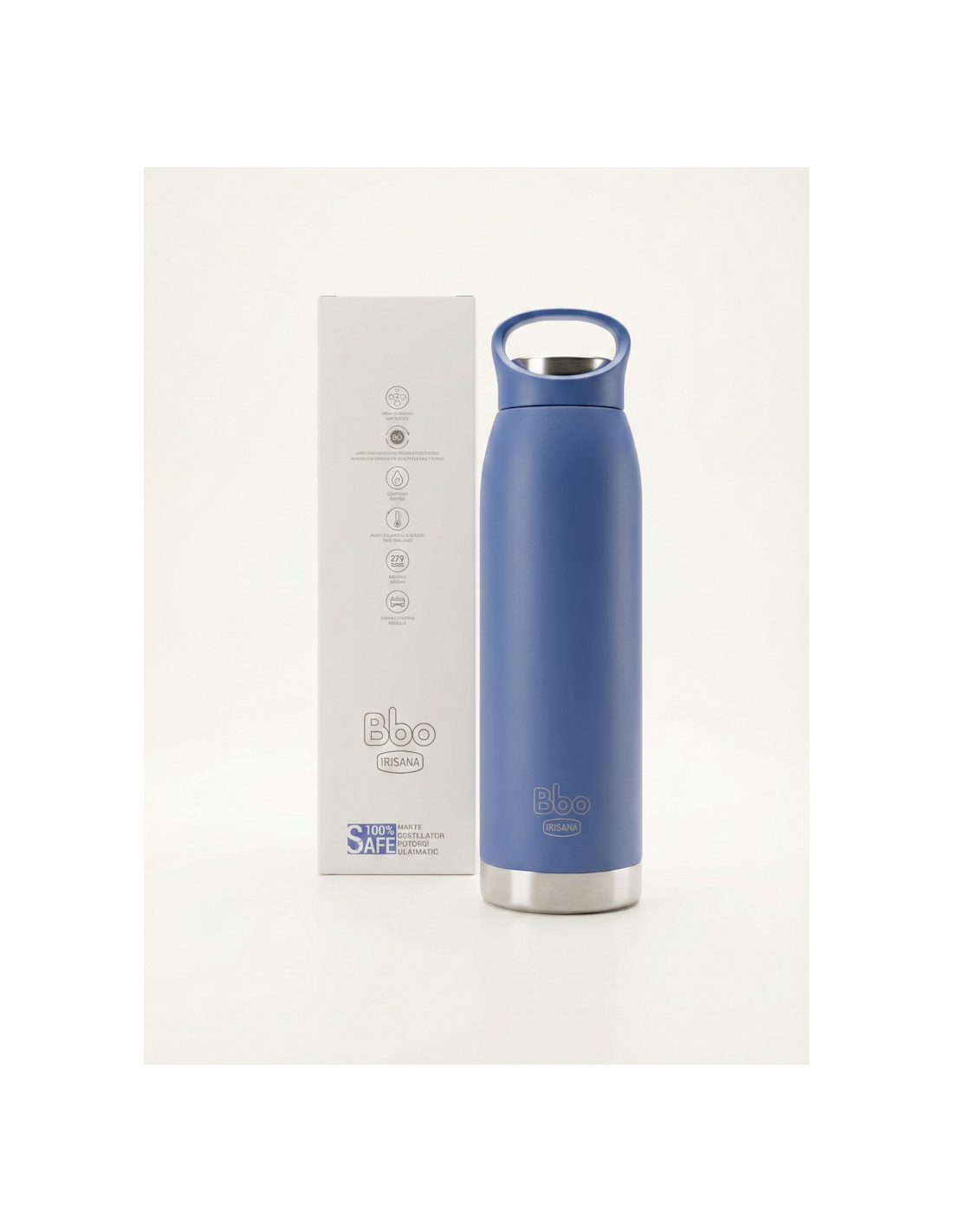 Botella termo de acero inox 304 Bbo 700 ml azul con asa en tapa