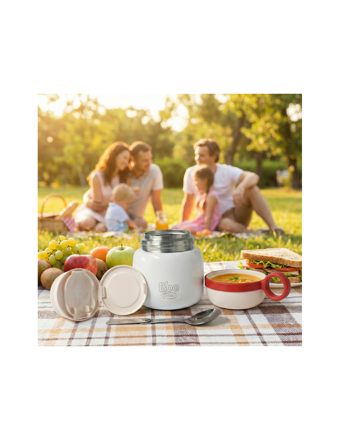 Lleva tu alimentación al siguiente nivel con el termo Bbo Irisana. Fabricado con materiales de máxima calidad (Acero 316), este termo es la solución definitiva para transportar sopas, purés o guisos manteniéndolos a la temperatura ideal y libres de tóxicos.